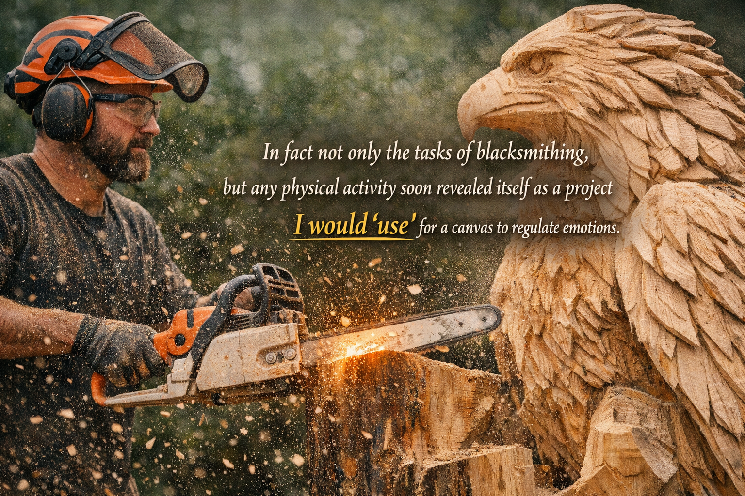 Even at this young age I was consciously aware of how I was regulating my emotions via these acts, and of how this strange synchronicity of tasks formed a compliment. I also learned to make good use of physical work to regulate emotions when I needed to establish any kind of baseline equilibrium. This wasn’t a result of some special genius or education, nor from doing sessions with a psychologist or counsellor – it was my male nature understanding how to regulate itself.