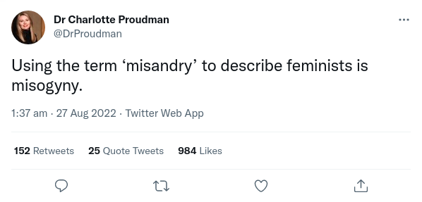 Proudman is prolific on Twitter. A separate page has selected tweets of Charlotte Proudman.