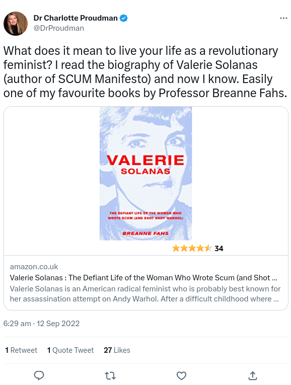 Proudman is prolific on Twitter. A separate page has selected tweets of Charlotte Proudman.