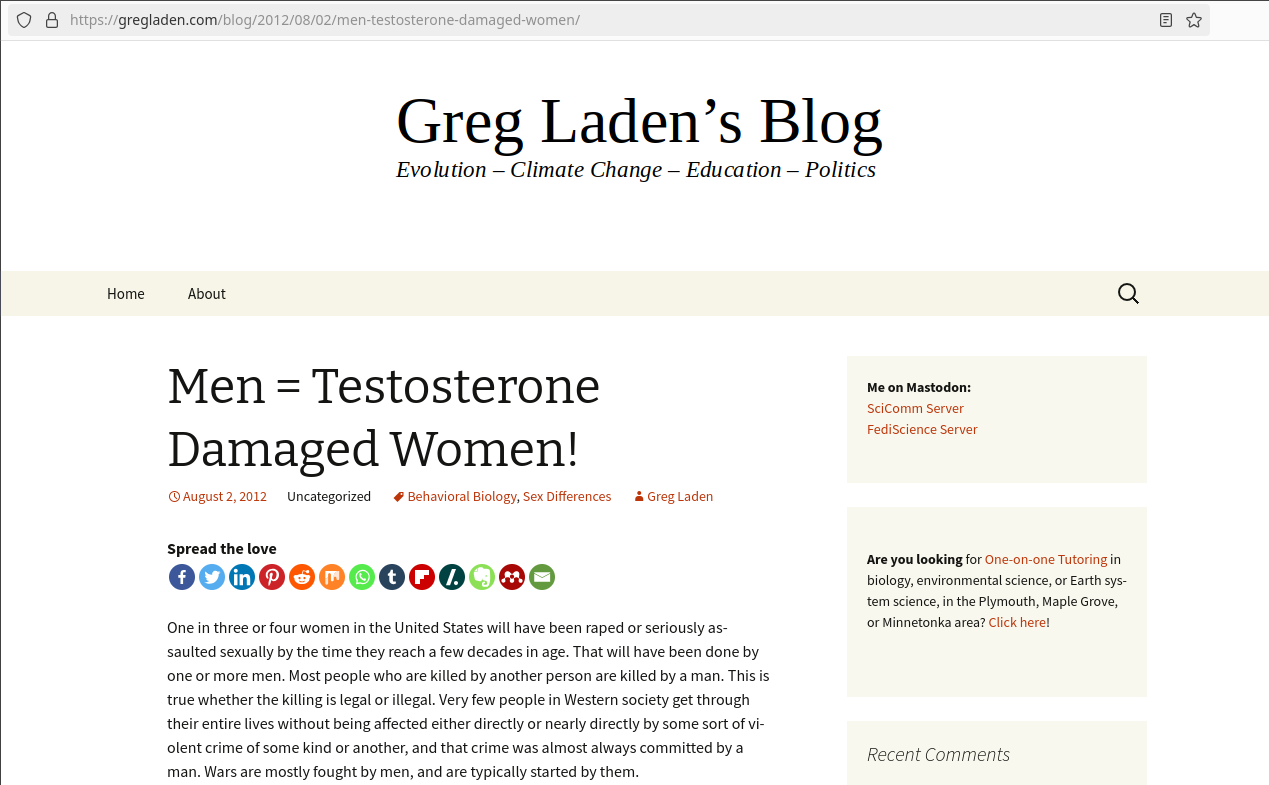 - ↑ https://gregladen.com/blog/2012/08/02/men-testosterone-damaged-women/
