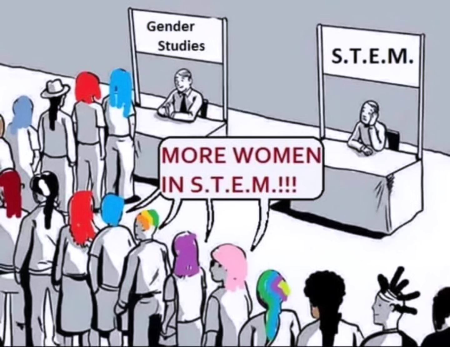Science, Technology, Engineering and Mathematics (STEM) refers to four major areas of study that are responsible for most innovation in modern society. Graduates of gender studies programmes often complain that there aren't enough women in STEM whereas they could have studied STEM rather than gender studies.